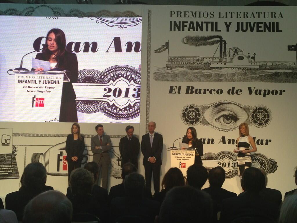 Ahora mismo se está haciendo entrega de los Premios SM (esto es, El Barco de Vapor y Gran Angular, aunque también entra el premio Jordi Sierra i Fabra), y aunque no estoy allí para verlo (en cuanto pueda, he de sacarme el carnet. SEA-CÓMO-SEA), ¡tenemos una imagen en primicia de Andrea Abello, ganadora del premio Jordi Sierra i Fabra por su novela "Fundido a blanco"!
